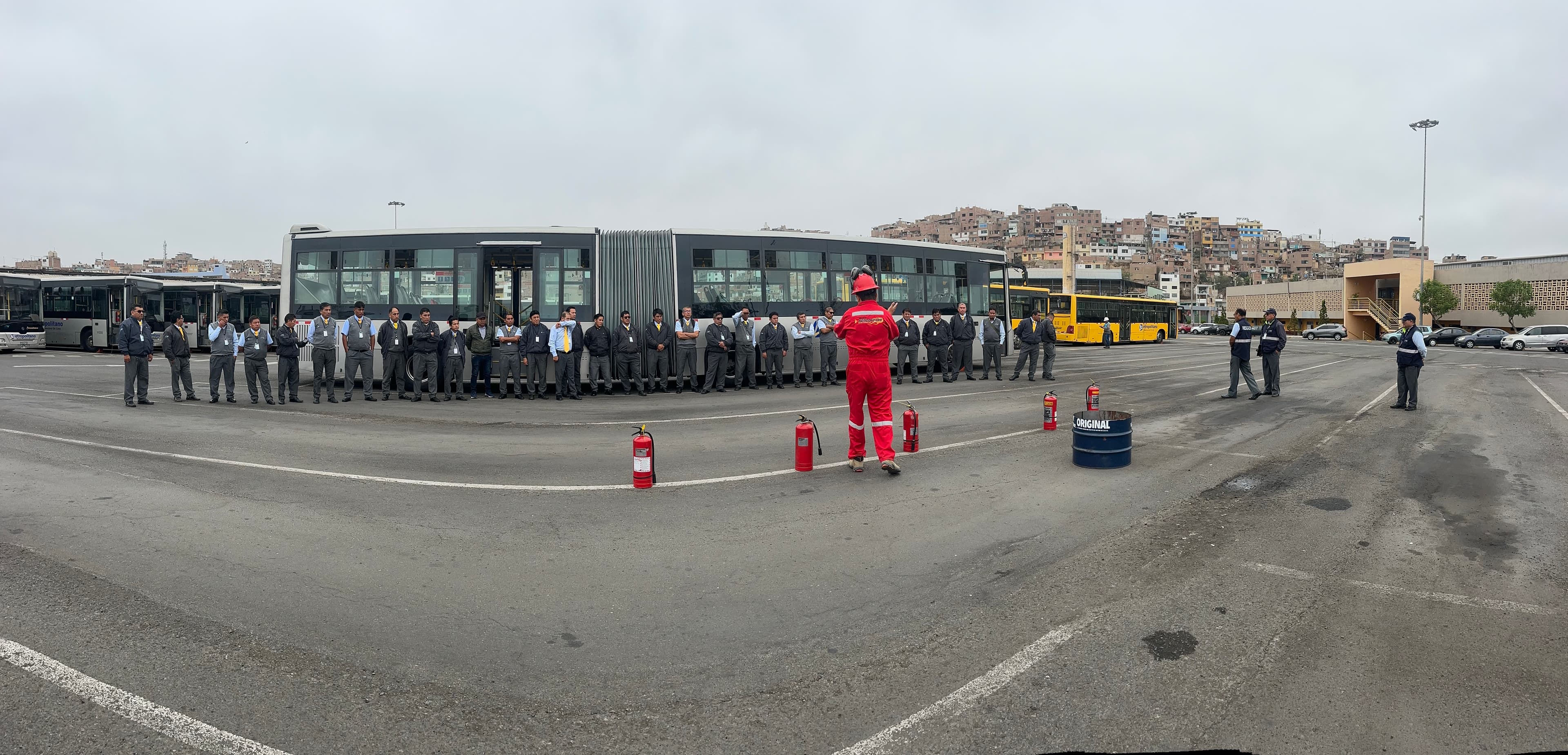 Entrenamiento teórico-práctico en el manejo correcto de extintores, técnica PASS y tipos de fuego.